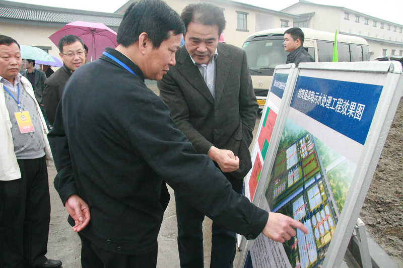 上午,由縣政協(xié)主席孟柏干帶隊的視察組冒雨視察污水集中預(yù)處理工程(一期),集團董事長倪阿泉陪同。