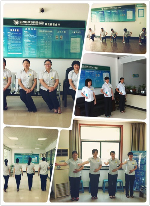 本次培訓(xùn)主要包括客服人員儀態(tài)行為規(guī)范訓(xùn)練、接待服務(wù)禮儀訓(xùn)練、微笑服務(wù)禮儀和訓(xùn)練營業(yè)窗口服務(wù)流程訓(xùn)練四方面,通過模擬、互動、練習(xí)與以老帶新等多種學(xué)習(xí)方式,調(diào)動了客服人員的學(xué)習(xí)積極性,使各人員熟練掌握了規(guī)范的坐姿、站姿、走姿、蹲姿以及微笑禮儀等具體服務(wù)禮儀,培訓(xùn)結(jié)束后還現(xiàn)場模擬了收取水費(fèi)等具體服務(wù)過程,收到了較好的培訓(xùn)效果。