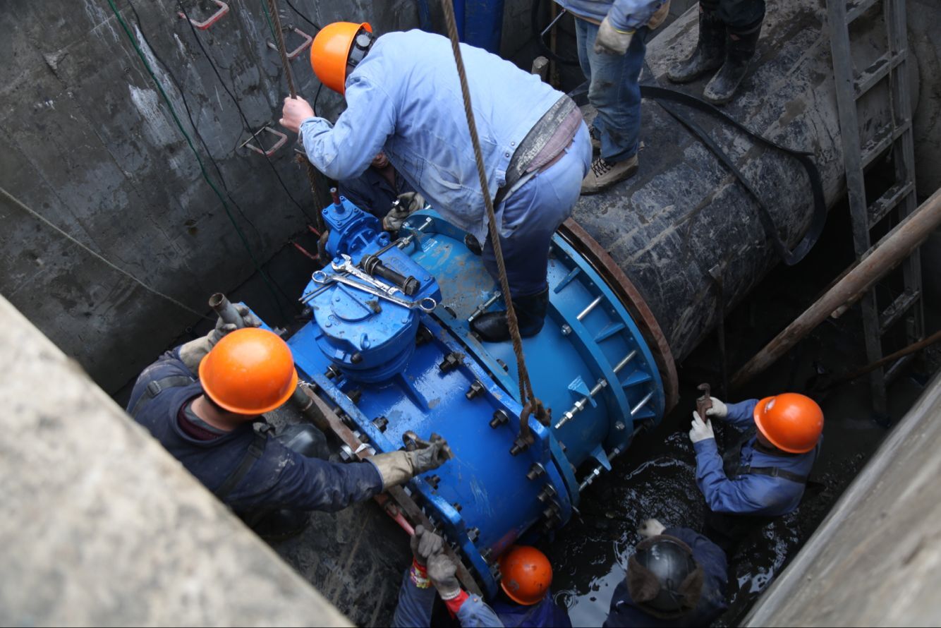 為盡可能消除每年由于沉降及熱脹冷縮引起的爆管隱患,有效減少供水搶修對用戶用水的影響,同時更利于今后供水管網調度,26日上午8時,公司組織工作人員在小舜江一期總管36#橋管東側安裝一只口徑為DN1200的控制蝶閥和配套伸縮節。