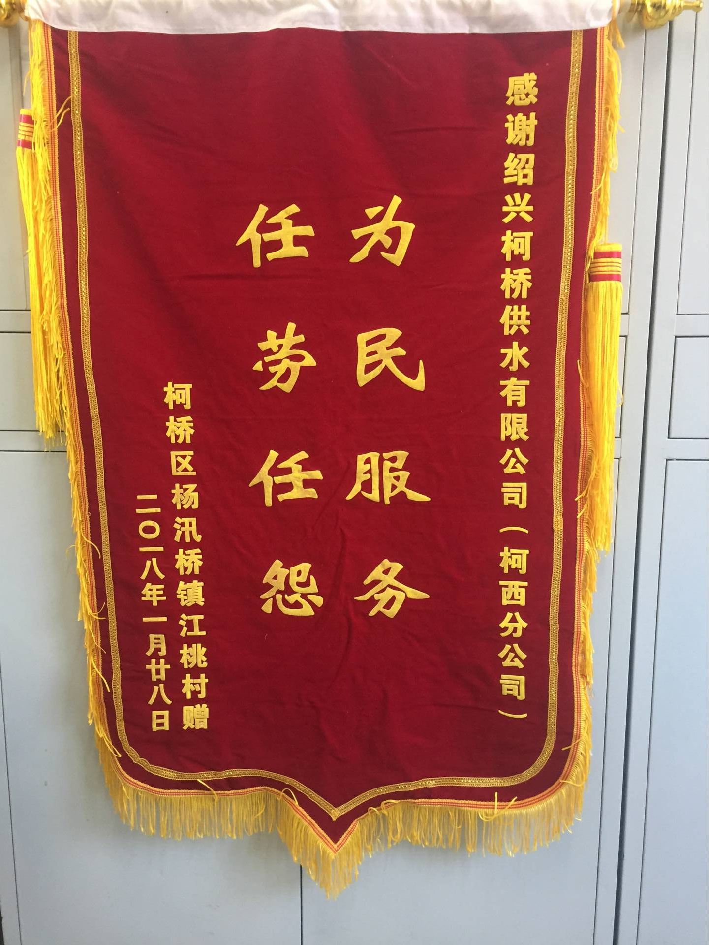 129日,楊汛橋鎮江桃村村委專程送來錦旗,感謝柯西分公司提供的優質服務。